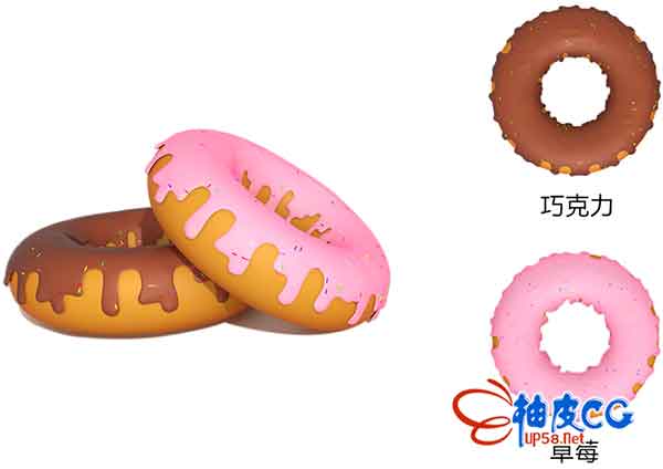 C4D 3D模型 甜甜圈食品,c4d格式,附材质