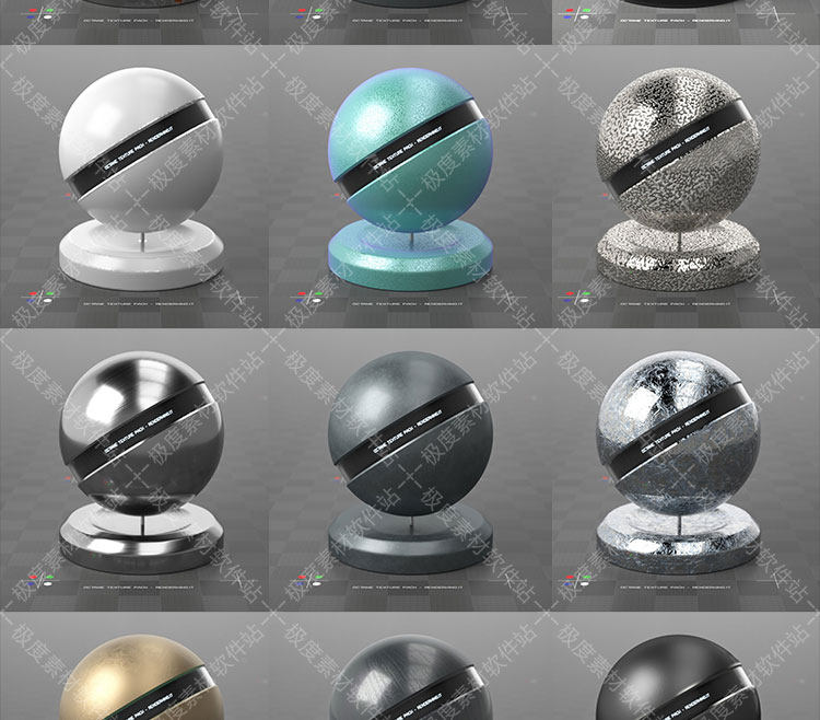 名 称:Octane金属塑胶车漆玻璃矿物工业设计C4D材质球素材预设