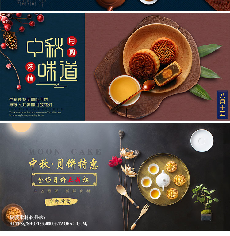 2019韩式中国风清新中秋月饼活动促销海报模板 PSD广告宣传素材