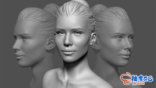ZBrush雕刻逼真女士面孔3D模型视频教程+练习文件