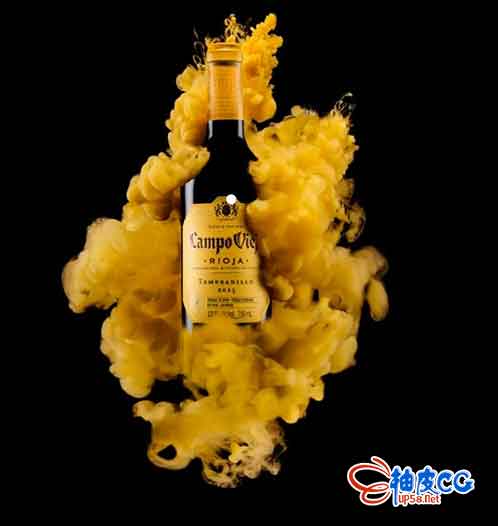 在C4D中制作3D模型并模拟烟雾笼罩酒瓶广告宣传动画视频,用OC渲染器渲染效果。