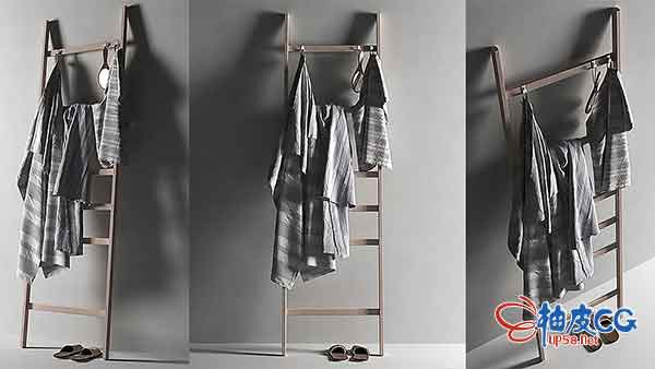 C4D / 3DSMAX木架上悬挂毛巾3D模型:等您坐沙发呢!