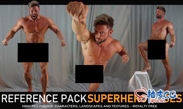 430 张各种英雄姿势的男性角色的免版税 jpeg,其中几个从动态角度拍摄。许多姿势的 360° 转身拍摄;非常适合拍照、参考、哑光绘画等。分辨率:6000x3376;数量:430张;大小:1.96G