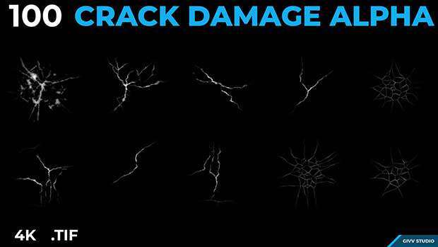 丰富您的贴图库并简化您的工作流程,使用此包为您的艺术作品添加一系列不同的裂纹损坏效果。高质量的细节对于让您的作品看起来很专业是必不可少的,这里有一组 100 个不同外观的裂纹损坏效果;带Alpha透明。 格式:.Tif;分辨率:4k;大小:155M(压缩后)